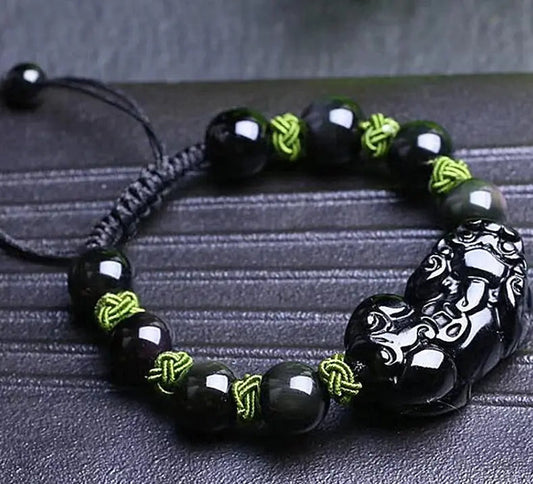 Natural Obsidian Wealth & Protection Pixiu Bracelet