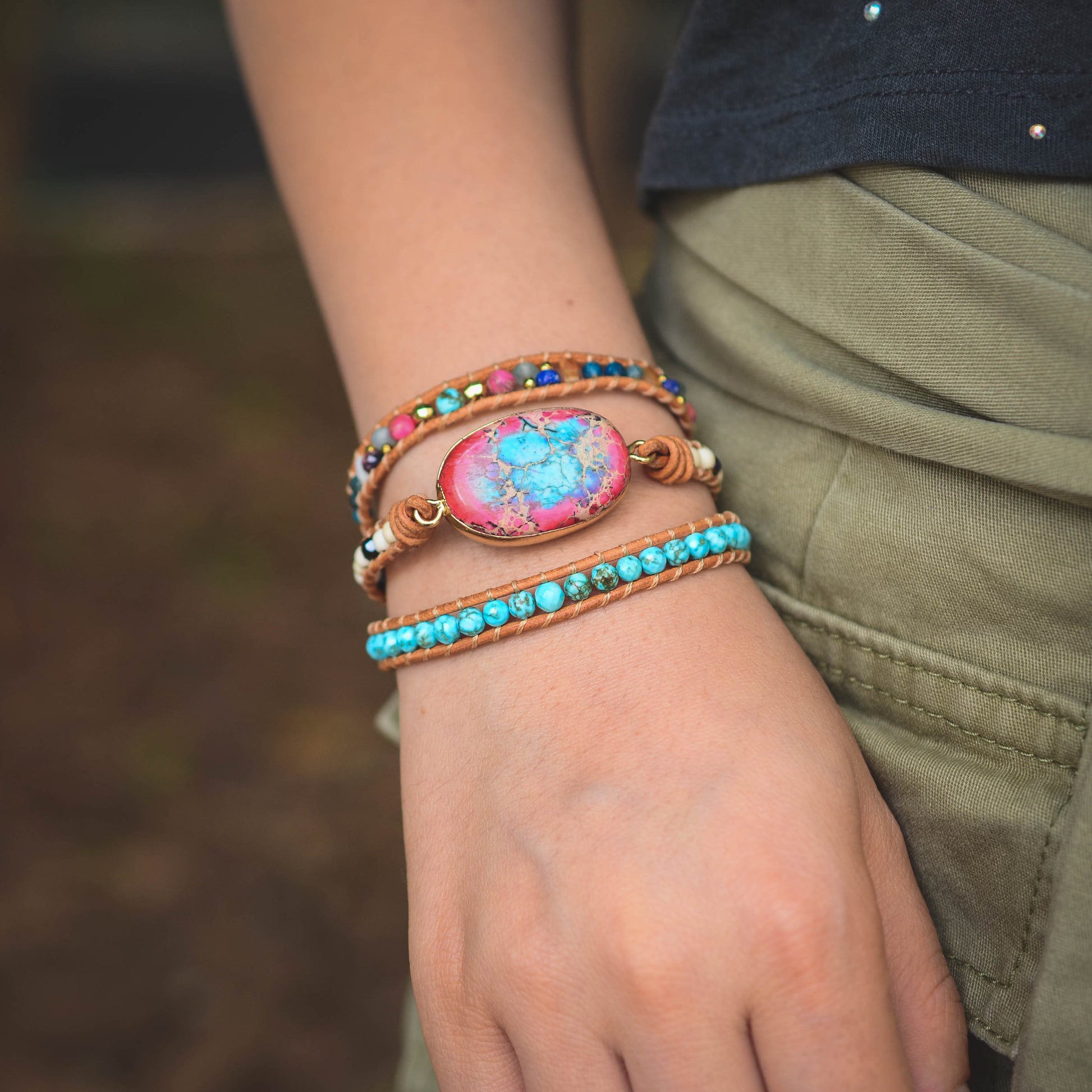 Boost your energy and strength with the splendid Emperor Apatite wrap bracelet.